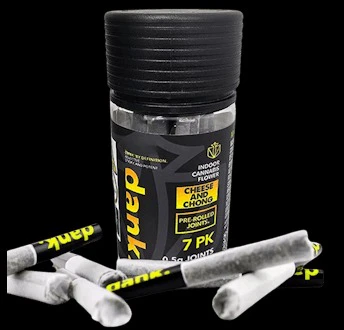The Dank 7-Pack Pre-Rolls featuring the Cheese and Chong strain is a sativa-dominant hybrid that offers a unique and enjoyable experience. This strain combines the energizing and uplifting qualities of sativa with the mellow, relaxing effects of its hybrid lineage. Cheese and Chong delivers a smooth, euphoric high that can boost creativity, focus, and social interactions, making it an excellent choice for daytime use or social occasions.