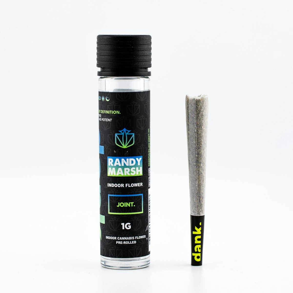 A one gram (1G) pre-roll joint of premium DANK Randy Marsh flower rolled in classic joint paper. Randy Marsh is a potent hybrid strain resulting from a cross between Apples and Bananas and Gary Payton. Its effects are felt almost instantaneously, delivering a powerful impact to the mind and inducing a state of profound euphoria. As your consciousness ascends to greater heights, you'll experience a surge in energy accompanied by heightened focus, occasionally leading to fits of laughter.