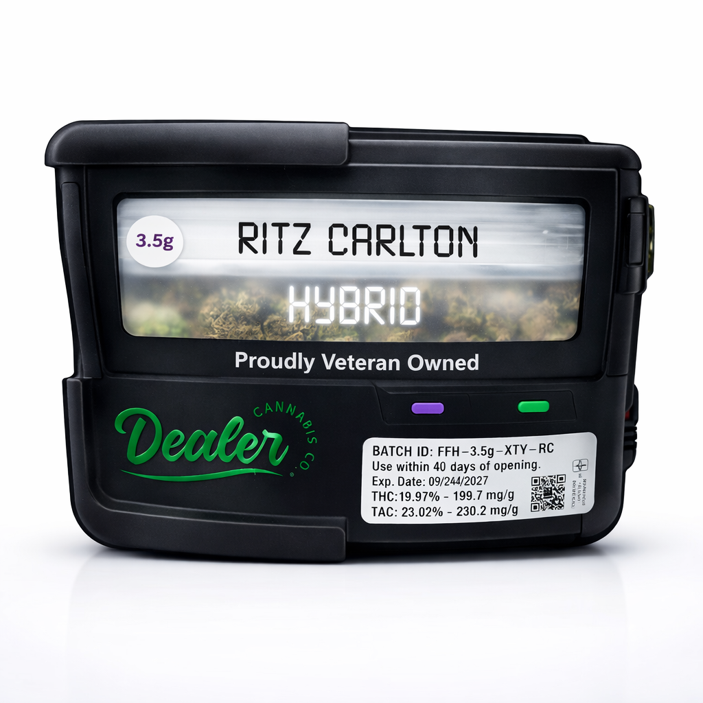 Ritz Carlton is a luxurious indica-leaning hybrid born from the cross of Rainbow Belts 2.0 #37 and Gelato #41. This strain delivers a deeply soothing, full-body relaxation that melts away tension while keeping the mind calm and creative. Its fruity, dessert-like flavor carries notes of sweet candy and creamy gelato, making it a perfect evening strain for unwinding after dinner or settling in for a movie.