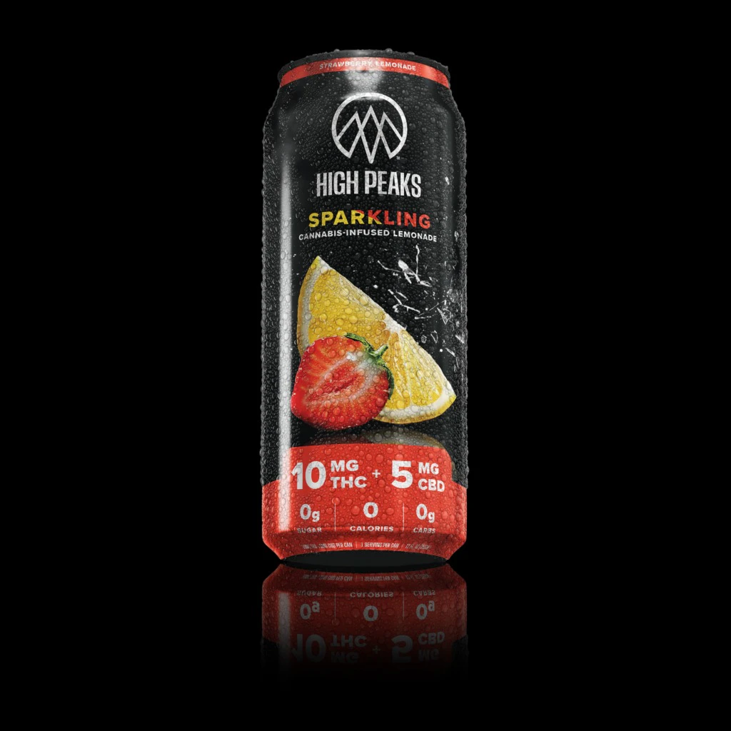 High Peaks sparkling strawberry lemonade, delivering full flavor with no sugar, calories, or carbs. Each sip is a blend of sweet strawberries and tangy lemonade, delivering a perfectly balanced effect that leaves you feeling euphoric, yet mentally clear.