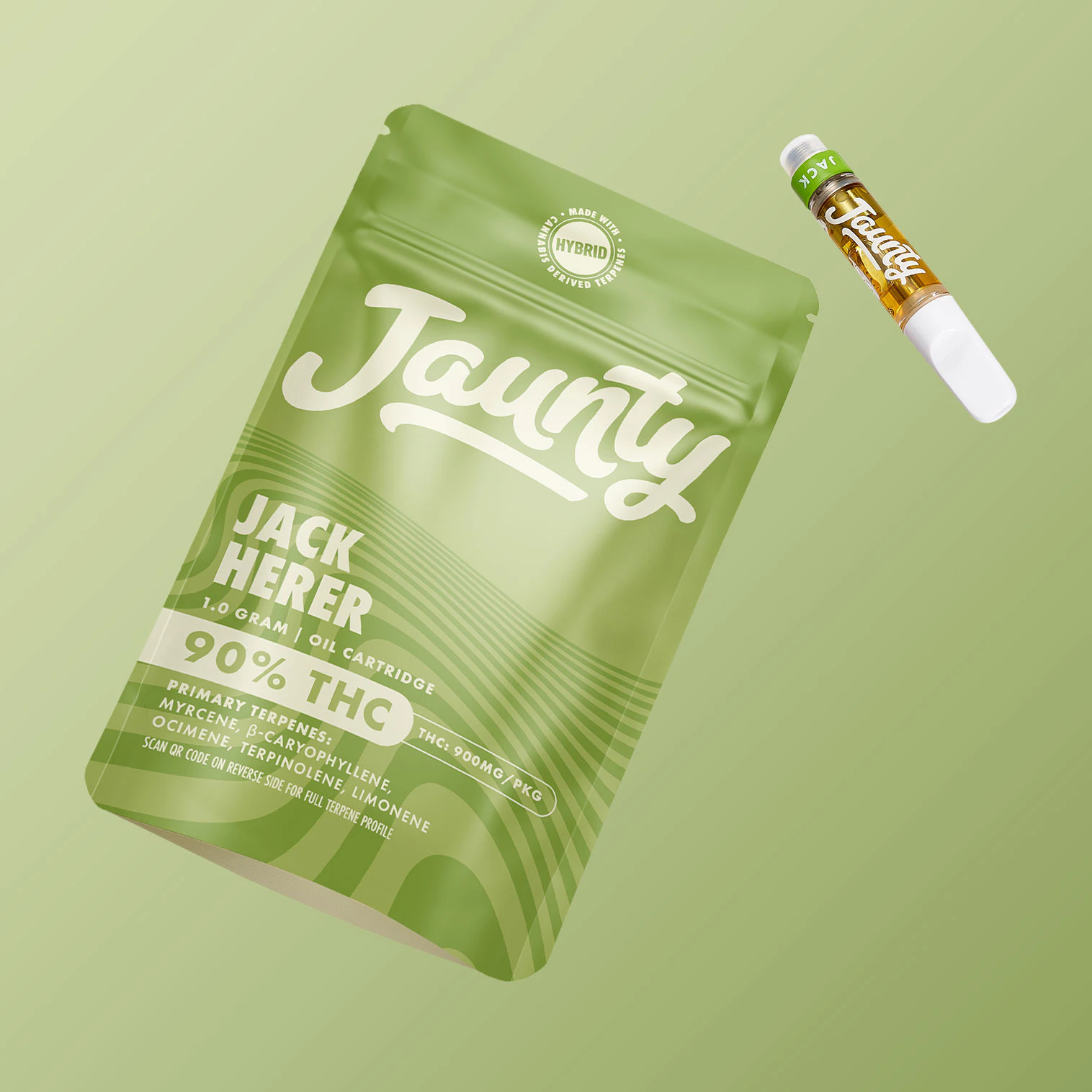 Jaunty’s classic 510-thread vape cartridges combine proprietary blends of cannabis-derived terpenes with CO2-extracted cannabis oil, delivering true-to-strain flavors and effects-based profiles. Jack Herer is one of the most well-known hybrid strains. Each hit is filled with fragrant citrus notes and pine overtones, delivering uplifting and euphoric effects perfect for any social setting.
