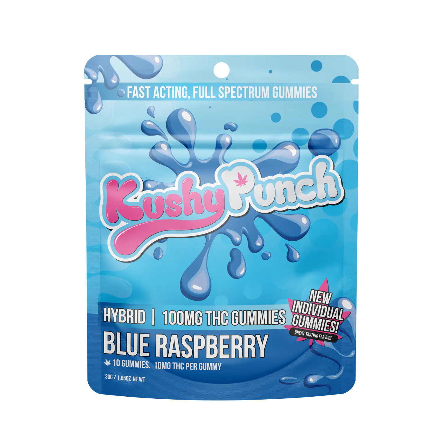 10 Individual Kushy Punch Gummies -100mg THC -Hyrbid -Blue Raspberry Flavor -Contains Full Spectrum Oil -15 Minute Fast Activation