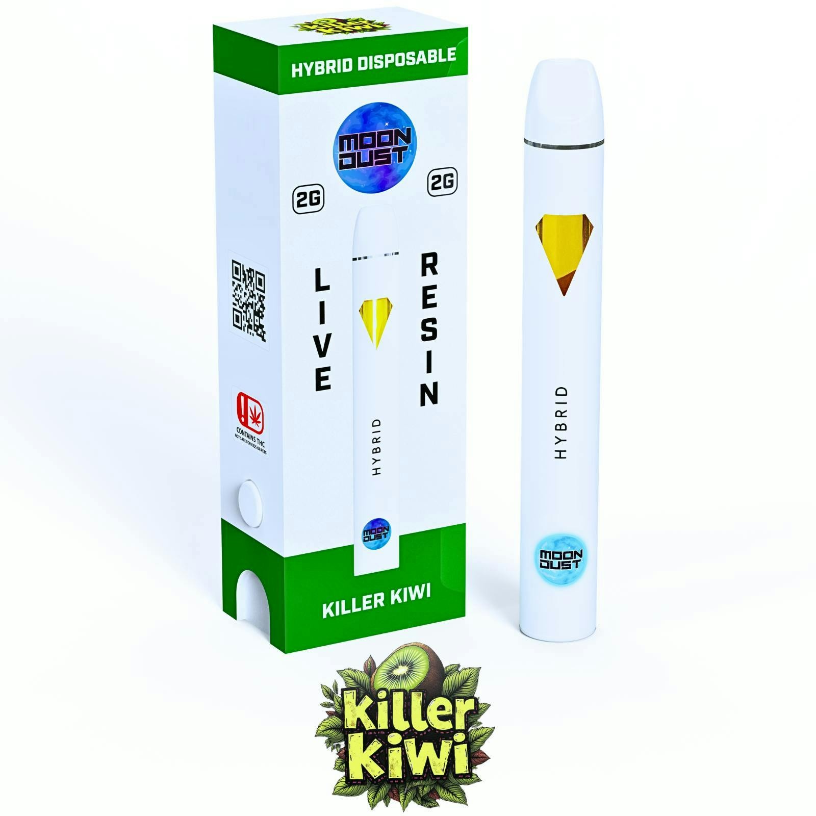 Indulge in balanced bliss with Moon Dust’s 2g Killer Kiwi Hybrid Live Resin Disposable—precision-crafted for flavor seekers and high-performance smokers.