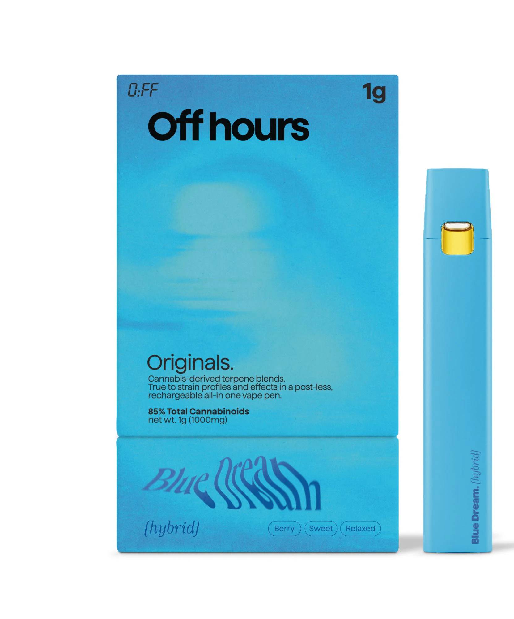 Blue Dream is a sativa-dominant hybrid with a sweet, fruity aroma reminiscent of blueberries. Don’t let the sativa fool you though, this strain is known for its calming, cerebral high that will provide you full body relaxation. We packed all that chill goodness into an easy to use and discreet all-in-one vape.
