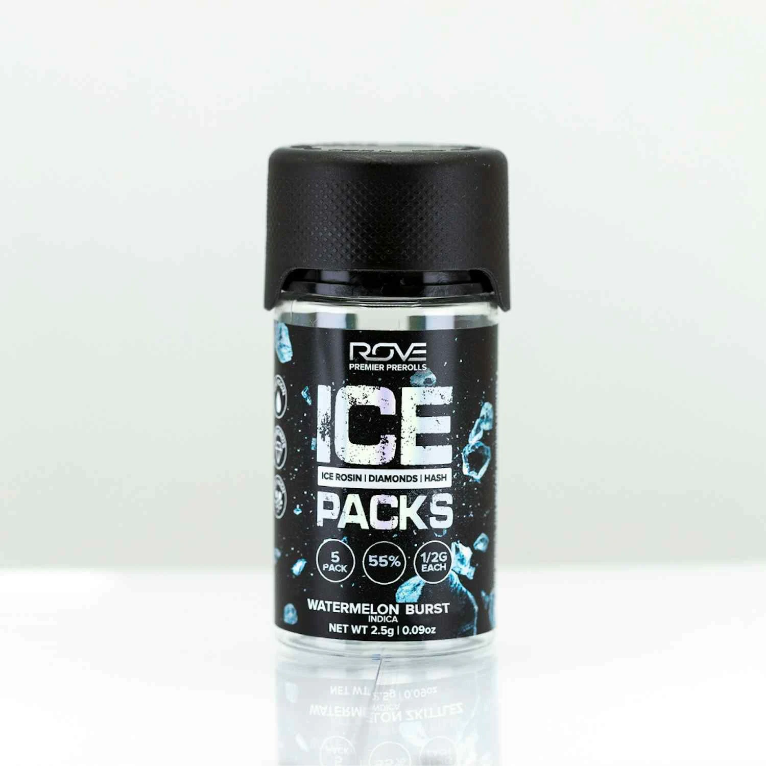 Rove Ice Packs, the world’s first triple-infused preroll. Made with premium-grade flower fully-infused with THCA diamonds and solventless ice hash rosin, they're expertly rolled, then coated with more ice hash. Super smooth and ultra potent, Rove Ice Packs test at over 50% THC. Welcome to the next evolution of prerolls. Ready for a tasty treat? Watermelon Burst is here to deliver! Our strain offers a juicy mix of sweet melon, head-rushing euphoria and a unique smoking experience. Get ready for the perfect balance of relaxation and energy with our Watermelon Burst. Come try it and experience the flavor of summer in every puff!