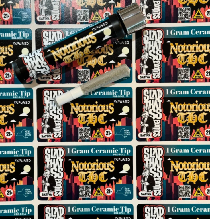Notorious THC is created through crossing the potent Ghost of Von Humboldt X Caramel Cream X Humboldt Frost strains. If you're after a high-powered bud with plenty of stoney effects, you've found it with Notorious THC. The high starts with a creeping effect, sneaking into both mind and body before suddenly taking hold and dropping you into a state of pure unfocused happiness and ease. 1g ceramic tip pre-roll
