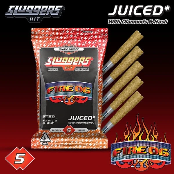 JUICED* 5-Packs come Triple-Infused with Premium Flower, Solventless Hash, Diamonds, High Terpene Extract, and rolled in kief. Each pack comes with 5 hard hitting JUICED prerolls and an exclusive collectible card, sealed in an air tight, rainbow holographic tin and mylar for long lasting freshness and quality.