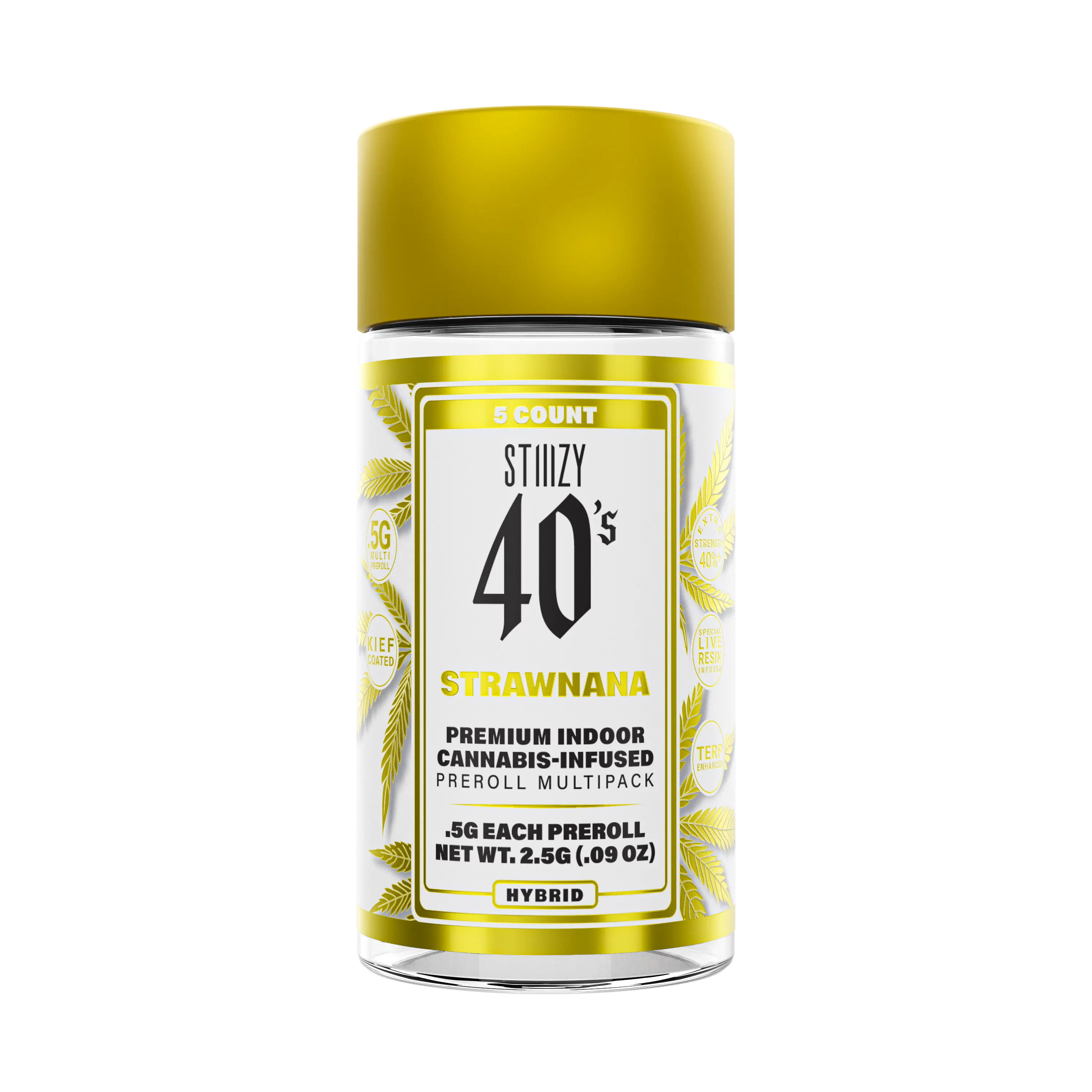 Elevate your pre-roll game. Stiiizy 40s pre-rolls are setting the standard with high potency, cannabis infused joints coated evenly with kief. Using our proprietary live resin infusion methods, we’ve designed every pre-roll to offer 40%+ THC potency with a unique flavor profile. With a smooth inhale and tasteful exhale, each and every Stiiizy 40 is packed with indoor grown flower, specifically made to ensure a potent and long-lasting high. Spark up the 40s.