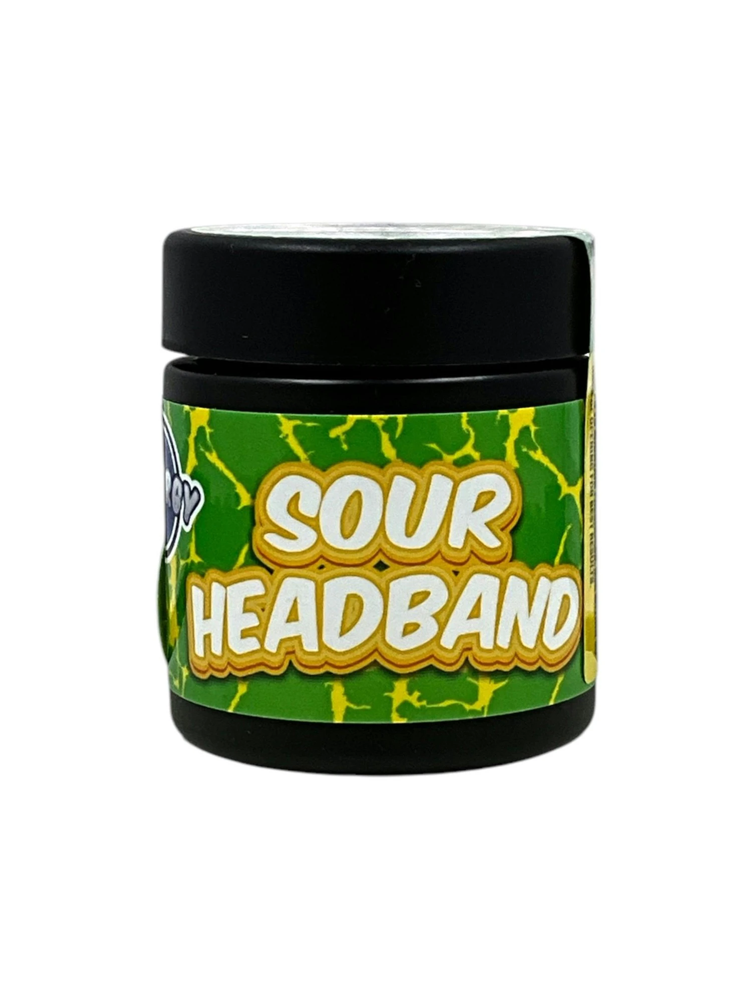 Sour Headband is a sativa dominant hybrid (75% sativa/25% indica) strain created through crossing the infamous Sour Diesel X Headband strains. With parents like these, I'm sure you can already imagine how heavy this high it's going to be. The Sour Headband high wraps around your mind and body with warming euphoria and tingly relaxation, keeping you active in mind while your body fades into calming oblivion. A cerebral influx of creative energy comes first, lifting your mood and leaving you feeling like you can take on the world. As your mood grows, a tingly effect will start in the back of your head and neck, spreading throughout your body and lulling you into a state of buzzy relaxation that can be arousing at times. Coupled with its super potent 18-25% average THC level, Sour Headband is recommended for experienced users suffering from fatigue, headaches or migraines, inflammation, and chronic pain. This bud has a super sour flavor with a chemical diesel exhale that will leave you gasping for air. The smell is very pungent with a citrus diesel overtone that's incredibly sour and harsh. This bud has round dense dusty green nugs with golden hairs and a coating of clear crystal trichomes.