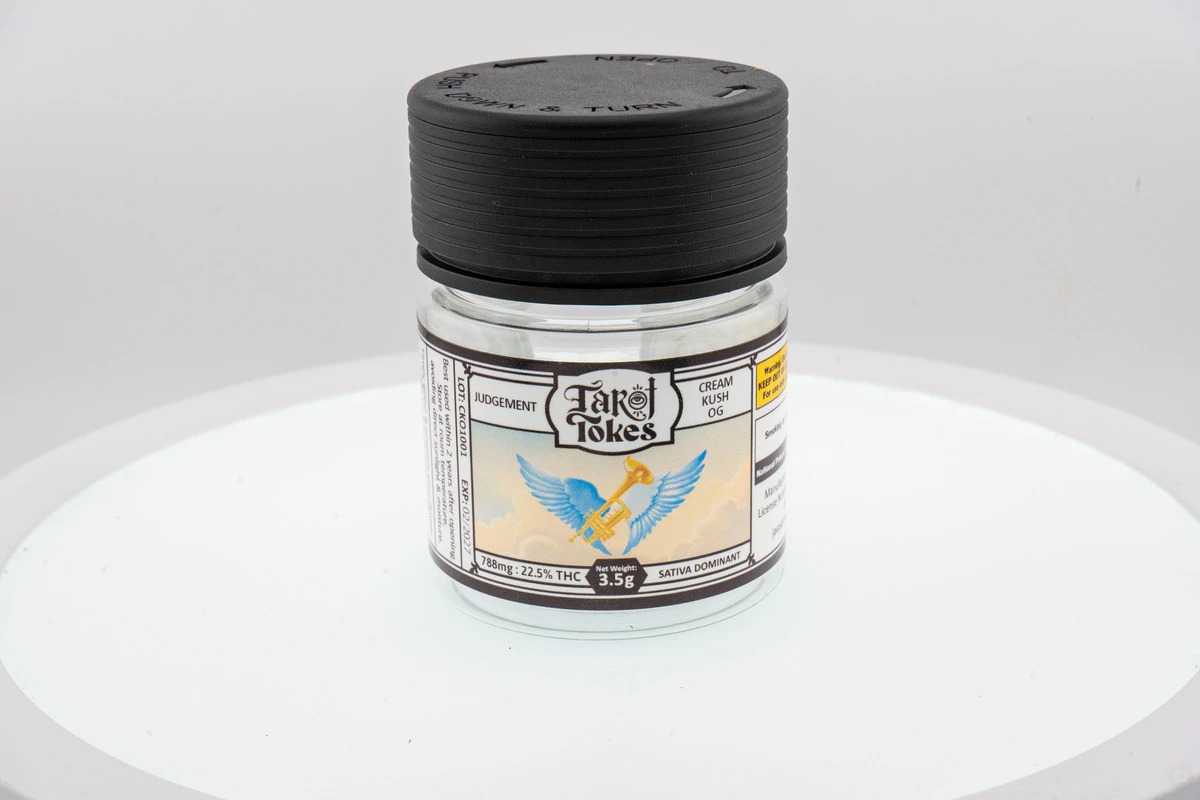Cream Kush OG, aligned with the introspective energy of the Judgement card, is an indica-leaning hybrid that balances relaxation with clarity. Its smooth, creamy flavor profile and subtle earthy undertones create a soothing experience, ideal for moments of deep reflection and self-evaluation. This strain encourages thoughtful decision-making and purposeful action, helping you align with your higher self. Whether you're reflecting on past choices or preparing for transformative change, Cream Kush OG offers the perfect blend of calm and focus to guide you through the awakening and renewal embodied by the Judgement card.